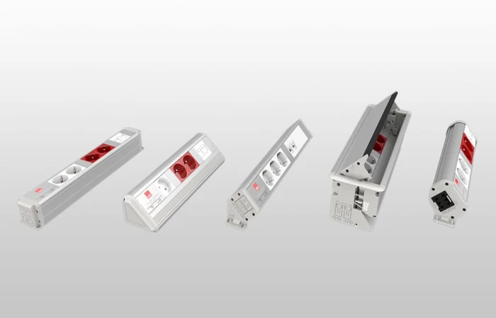 Elegant and practical solutions for business centres, offices, living and working areas..Ready to use products which are fully equipped with power (supply network/ups), data, telephone and multimedia sockets are currently considered important for work spaces, meeting and presentation rooms.