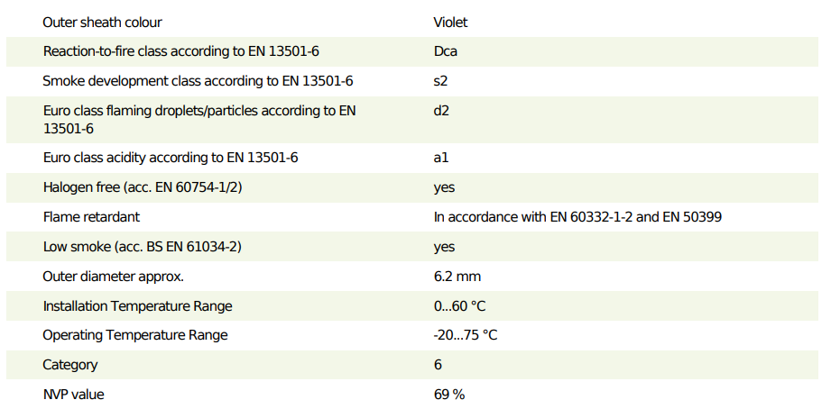 Excel Networking 100-071-500M CAT6 UTP LSOH VIOLET Dca-s2-d2-a1
