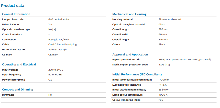 BVP150 220 240W 200W SWB CE LED170 NW